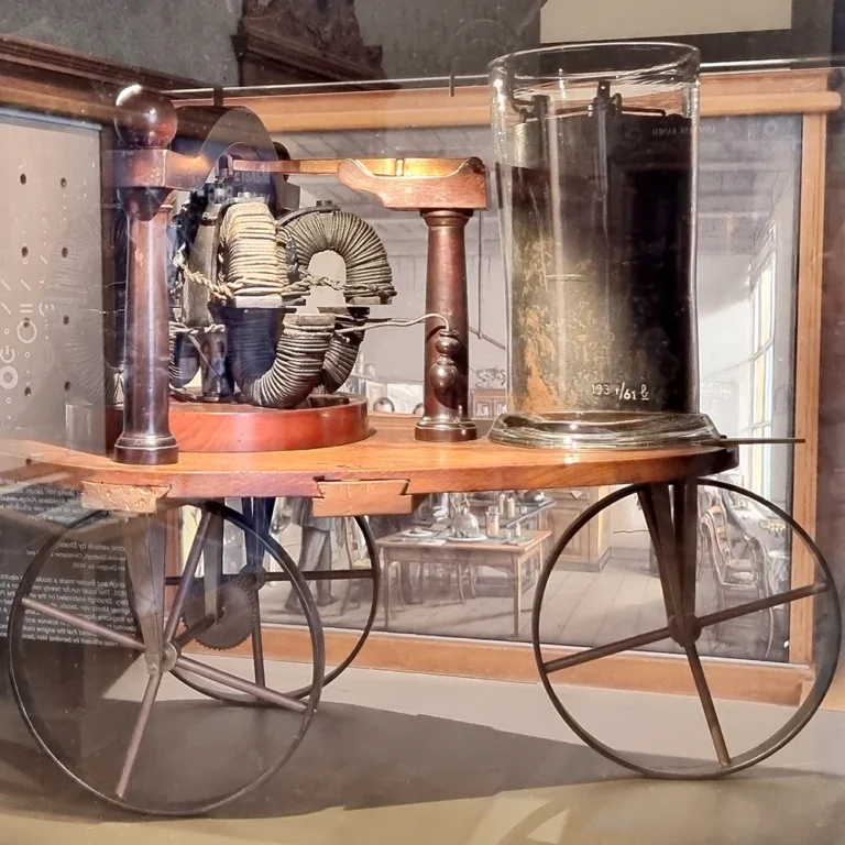 In een tijd waarin paard en wagen nog het ritme van de dag bepaalden, was Groningen het decor voor een technologische doorbraak die zijn tijd ver vooruit was. Sibrandus Stratingh zette in 1835 een grensverleggende stap door een voertuig te creëren dat geruisloos reed op zijn eigen, meegevoerde energiebron, een primitieve batterij met zwavelzuur en koper.